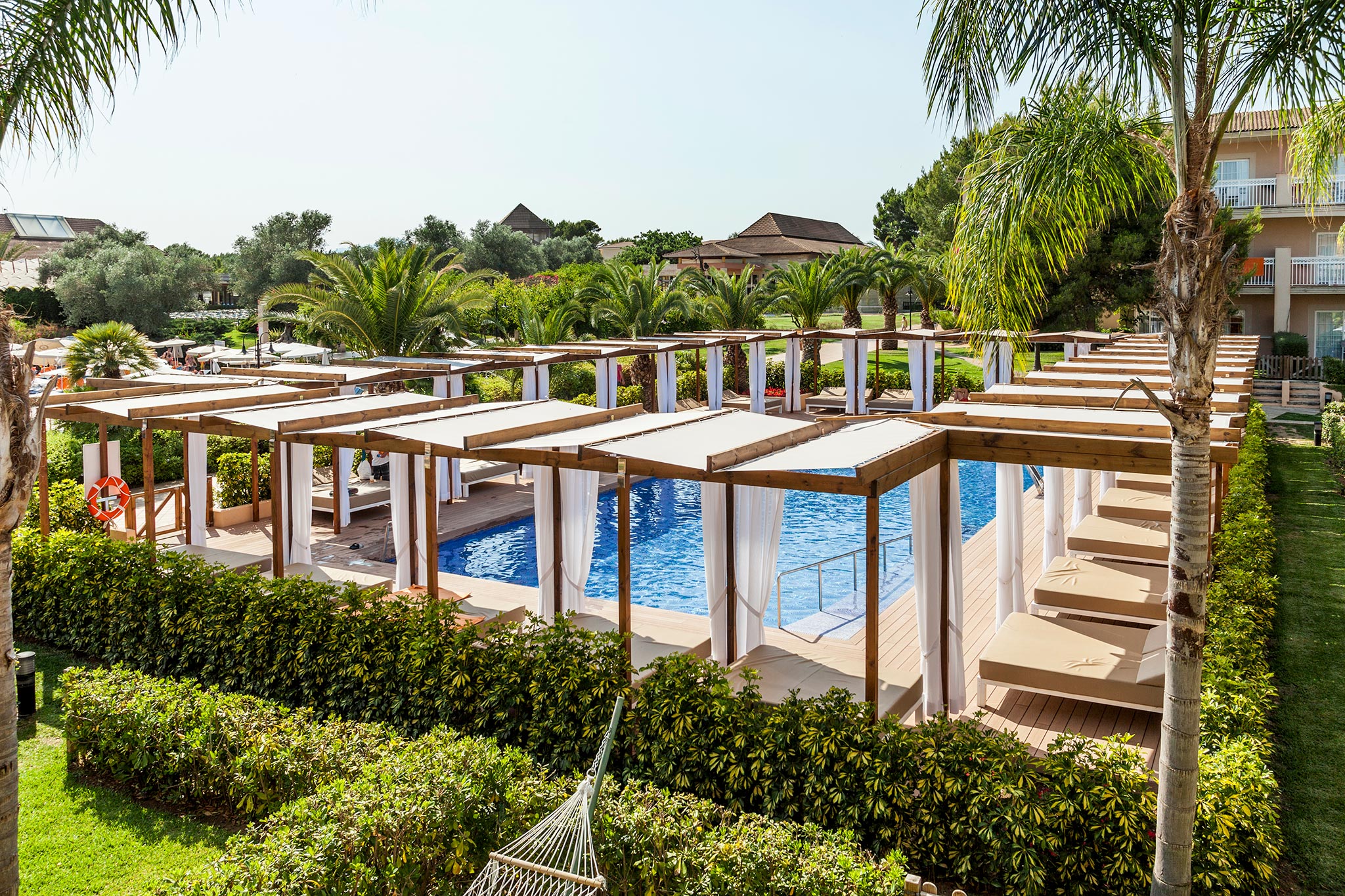 Main pool: discover a wonderful pool surrounded by gardens, in the center of the enclosure where you can enjoy a good swim or relax in the sun on the sun terrace with hammocks. In it you will find the bubble, "Wet Bubble", where small and large can have fun. All surrounded by spectacular gardens and numerous services for you to enjoy your stay to the fullest.